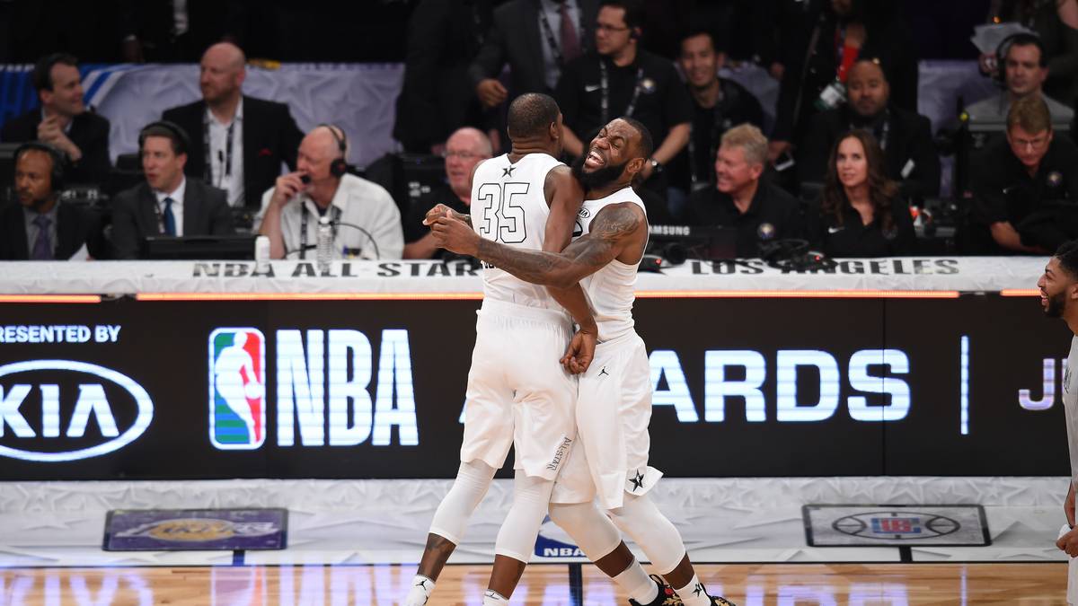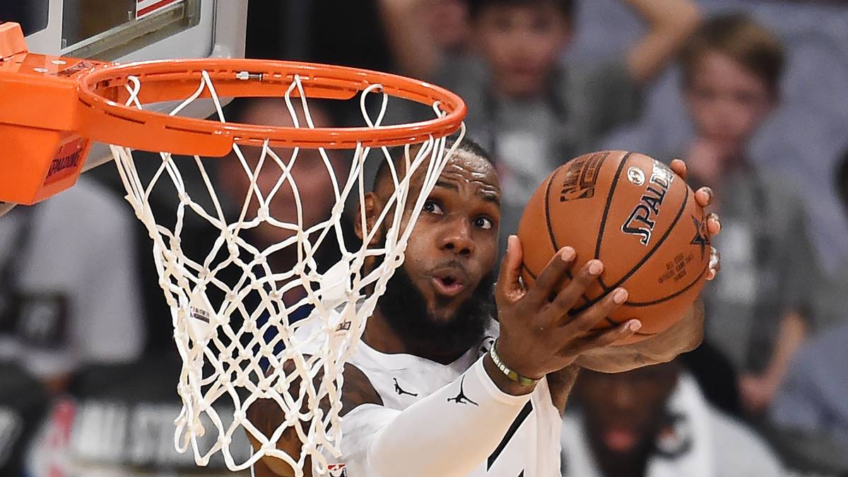 LeBron James (vorn) schlägt Steph Curry, das war das Ergebnis des neuen, auf die beiden Superstars zugeschnittenen NBA All-Star Games. Sportlich war es wie immer vernachlässigbar, dafür gab es jede Menge Glanz und Glitzer