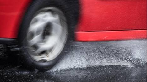 Eine Fahrbahn ist nass, wenn sich auf ihr ein Wasserfilm gebildet hat - und sei er noch so dünn. Das hat der Bundesgerichtshof (BGH) festgelegt. Man erkennt es in der Regel daran, dass das Fahrzeug vor sich eine Sprühfahne bildet. Sind jedoch nur ein paar einzelne Pfützen auf der Straße oder es regnet nur leicht, gilt eine Fahrspur noch nicht als nass.