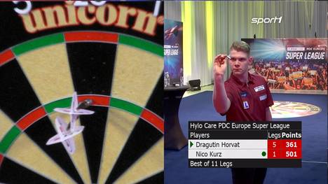 Gegen Horvat - den Superleague-Sieger 2016 (Erstrunden-Aus bei der WM 2017 gegen Simon Whitlock) - folgte der Rückschlag, obwohl Kurz nach einem 1:5-Rückstand eine große Aufholjagd hinlegte. "Ich habe die ersten fünf Legs gut gespielt und Nico ist nicht reingekommen. Dann habe ich nachgelassen und Nico war sofort da", erklärte der erleichterte Horvat hinterher.