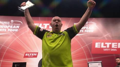 Damit fuhr „Mighty Mike“ seinen ersten Titel in diesem Jahr ein - und den insgesamt 38. auf der European Tour. „Das habe ich wirklich gebraucht“, freute sich van Gerwen im Siegerinterview auf der Bühne.