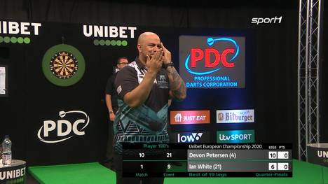 Im letzten Viertelfinale der European Darts Championship in Oberhausen (Halbfinale und Finale am Sonntag ab 20 Uhr im LIVESTREAM und ab 20.45 Uhr LIVE im TV auf SPORT1) hat Devon Petersen Altmeister Ian White mit 10:6 aus dem Turnier geworfen.