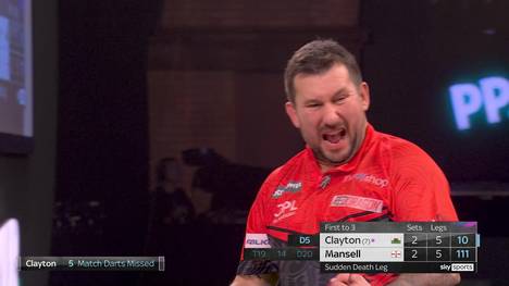 Im darauffolgenden Leg vergab Clayton drei Matchdarts und Mansell glich zum 3:3 aus. Es entwickelte sich ein spannender Thriller, mit ständigem Hin und Her. Zwei weitere Breaks später und es stand 4:4 in den Legs. Anschließend brachten beide Spieler ihren Anwurf durch und ein Sudden-Death-Leg musste die Entscheidung bringen. Die Nummer sieben der Order of Merit behielt in diesem die Nerven und checkte mit der Doppel-5 zum Match.