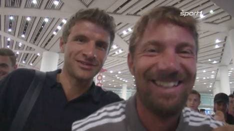 Bei der Ankunft des FC Bayern in China hat Thomas Müller gegenüber SPORT1 sein persönliches Erfolgsgeheimnis verraten. Er dankte FC Bayern Fitnesstrainer Andreas Kornmayer dafür, dass er ihn noch fitter und schneller gemacht hat. "Er hat mich von einer langsamen zu einer schnellen Schnecke gemacht", sagte Müller mit einem Augenzwinkern.