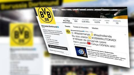 Über den BVB-Twitter-Account wird ein Video mit Recep Tayyip Erdogan gepostet, dazu ein Text versehen mit Hakenkreuz und dem Hashtag Nazideutschland.