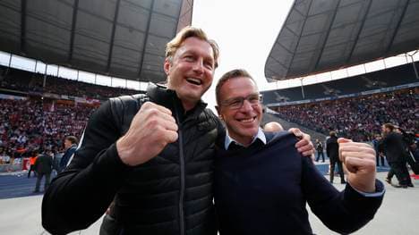 Ralph Hasenhüttl (links) und Ralf Rangnick bilden bei RB Leipzig ein starkes Gespann