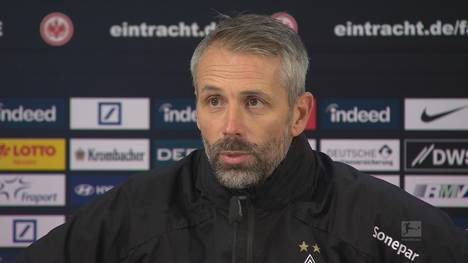 Vor dem 2:1 der Frankfurter ruht der Ball bei einem Standard nicht. Marco Rose diskutiert die Szene nach Spielende mit dem Schiedsrichter.