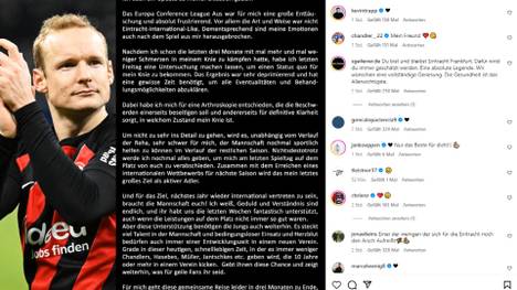 Ob er sich eine Zukunft als Trainer vorstellen kann, ließ Rode offen. Er wolle der Eintracht aber "in irgendeiner Form erhalten bleiben".