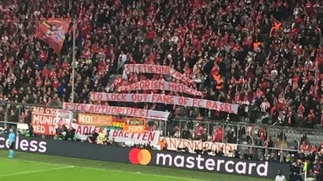 Einige Bayern-Fans hielten ein Banner hoch, auf dem auf Englisch stand: "In Warschau, Rostov oder sonstwo: Nein zu Sperren von Fans! Die arrogante UEFA bekämpft Fußball anstatt Rassismus."