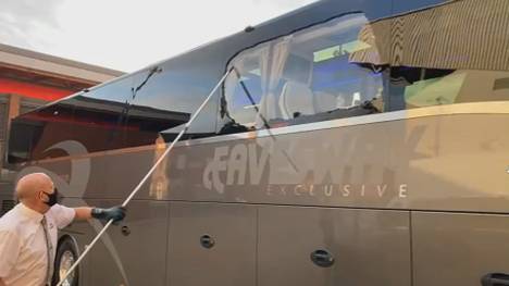 Bilder und Videos zeigen, dass die äußere, getönte Schicht zerbrach - das dahinterliegende Glas hielt jedoch stand. Spieler der Königlichen wurden bei der Attacke nicht verletzt. (SERVICE: Ergebnisse und Spielplan Champions League)