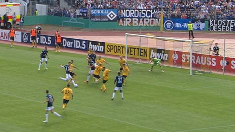 Der neu verpflichtete Joker Ransdorf-Yeboah Königsdörffer mit einem Doppelpack (83./111.) und Kapitän Sebastian Schonlau (97.) drehten die Partie zugunsten des Teams von Trainer Tim Walter. Luke Hemmerich (16.) hatte den Außenseiter in Führung gebracht. In der Liga hatte der HSV nach seinem Auftaktsieg bei Eintracht Braunschweig zuletzt gegen Hansa Rostock verloren.