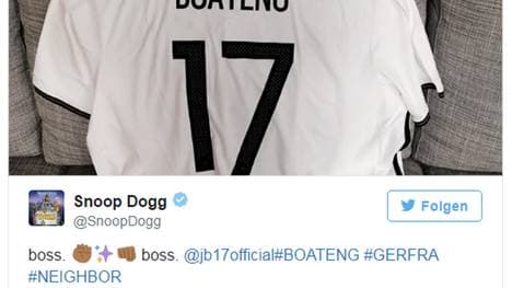 Die Sympathiebekundungen von Snoop Dogg sind dem beim deutschen K.o. verletzt ausgewechselten Verteidiger nicht verborgen geblieben: Auf Twitter hat sich Boateng zuletzt als Follower dem Rapper angeschlossen.