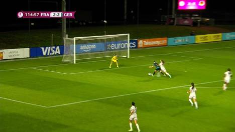 Unter anderem umkurvte Mara Alber in der 69. Minute Frankreich-Keeperin Ines Marques außerhalb des gegnerischen Strafraums, traf dann aber aus spitzem Winkel nur den Pfosten des leeren Tores.