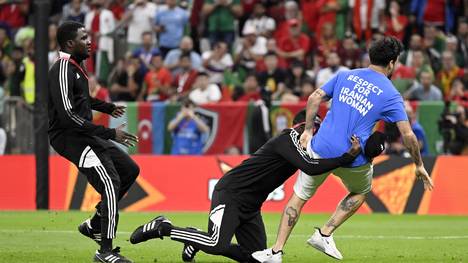 Bereits am Montag beim 2:0 Portugals gegen Uruguay bei der WM in Katar war ein Flitzer aufs Feld gelaufen. Er trug eine Regenbogenflagge und ein Superman-T-Shirt mit dem Schriftzug „Save Ukraine“ („Rettet die Ukraine“) auf der Vorder- und „Respect for Iranian Woman“ („Respekt für iranische Frauen“) auf der Rückseite. Der Flitzer, Mario Ferri aus Italien, ist mittlerweile wieder auf freiem Fuß. (NEWS: Alles Wichtige zur WM 2022)