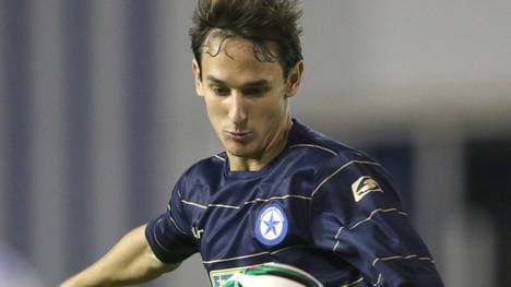 Mariano Bittolo erleidet eine fiese Verletzung. Ein Mitspieler trifft ihn unabsichtlich im Schritt, der Zweitliga-Kicker lässt sich noch in der Kabine nähen.