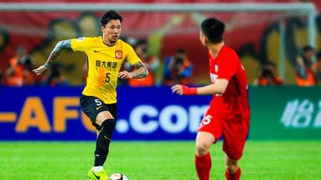 Evergrandes Verteidiger Zhang Linpeng benötigte beim Spiel der Asiatischen Champions League ein neues Trikot, weil er Nasenbluten bekommen hatte.