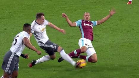 Bei seinem ersten Startelfeinsatz für die Hammers legte sich der Algerier Sofiane Feghouli am gegnerischen Strafraum den Ball zu weit vor und rauschte in den heranstürmenden United-Verteidiger Phil Jones hinein, der die Kugel in vollem Tempo weggrätschte.