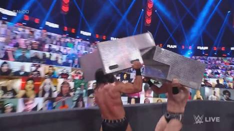 Beide Beteiligten schnappten sich einen Teil der Ringtreppe, rauschten aufeinander zu - und schlugen sich gegenseitig k.o. Das Match wurde als Unentschieden gewertet und dürfte zu einem Rückkampf führen, womöglich bei der nächsten Großveranstaltung Fastlane am 21. März.