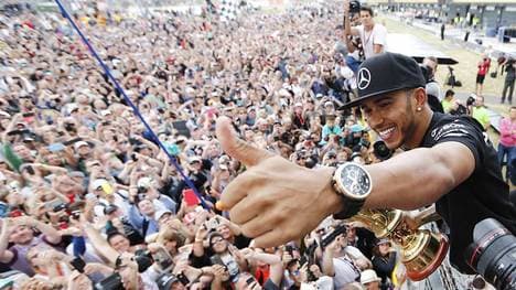 Lewis Hamilton wird nach seinem dritten Heimsieg in Silverstone von den Medien gefeiert.