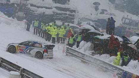 Gelbe Flaggen bei der "Nacht der langen Messer": Die vorletzte Wertungsprüfung der Rallye Monte Carlo wurde neutralisiert. Bei starkem Schneefall und ca. 20 Zentimeter Neuschnee auf dem Col du Turini war Ford-Pilot Jeroslav Melicharek etwa 500 Meter vor dem Gipfelpass mit seinem Auto stecken geblieben. Die nach ihm gestarteten Andreas Mikkelsen (Volkswagen), Mikko Hirvonen und Elfyn Evans (beide Ford) mussten hinter dem gestrandeten Auto des Slowaken anhalten.