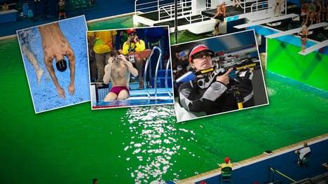 Nach dem Müll in der Lagune von Rio de Janeiro plötzlich auch ekliges Wasser im Schwimmbecken? Als das Wasser im Becken der Turmspringer am Dienstag tiefgrün schimmerte, sorgte das für große Verwirrung und Bedenken.