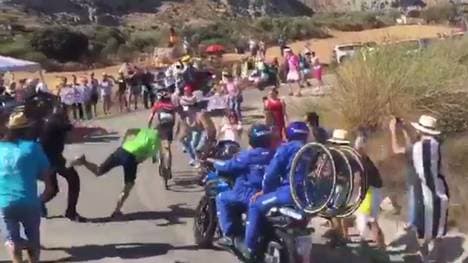 Denn in einer anderen Situation stieß ein Zuschauer Maxim Belkov am Anstieg des letzten Bergs vom Fahrrad. Der Russe fiel über die Seitenbegrenzung und startete nach dem Rennen auf Twitter einen Aufruf, ob jemand die Szene gefilmt hat.