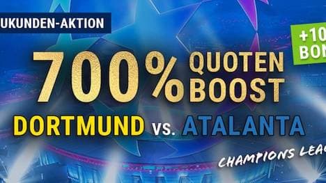 3. Platziere vor Spielbeginn eine 1X2 Wette auf Dortmund - Atalanta und wähle dabei den 700% Boost aus.