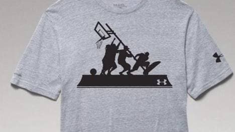 Das T-Shirt zeigt eine Gruppe von Basketballern, die gerade einen Korb aufstellen. An dem Umstand, dass das Motiv stark an das berühmte Iwo Jima Denkmal des US-Militärs auf dem Nationalfriedhof in Arlington erinnert, hatten einige Menschen Anstoß genommen.