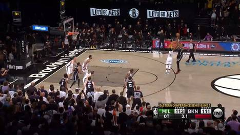 Durant war es auch, der seine Nets eine Sekunden vor Ende der regulären Spielzeit mit einem sensationellen Sprungwurf im Spiel hielt. Möglich gemacht hatte es ein Regelverstoß der Bucks nach einer Auszeit. Zu diesem Zeitpunkt waren noch 2,1 Sekunden auf der Uhr gewesen.